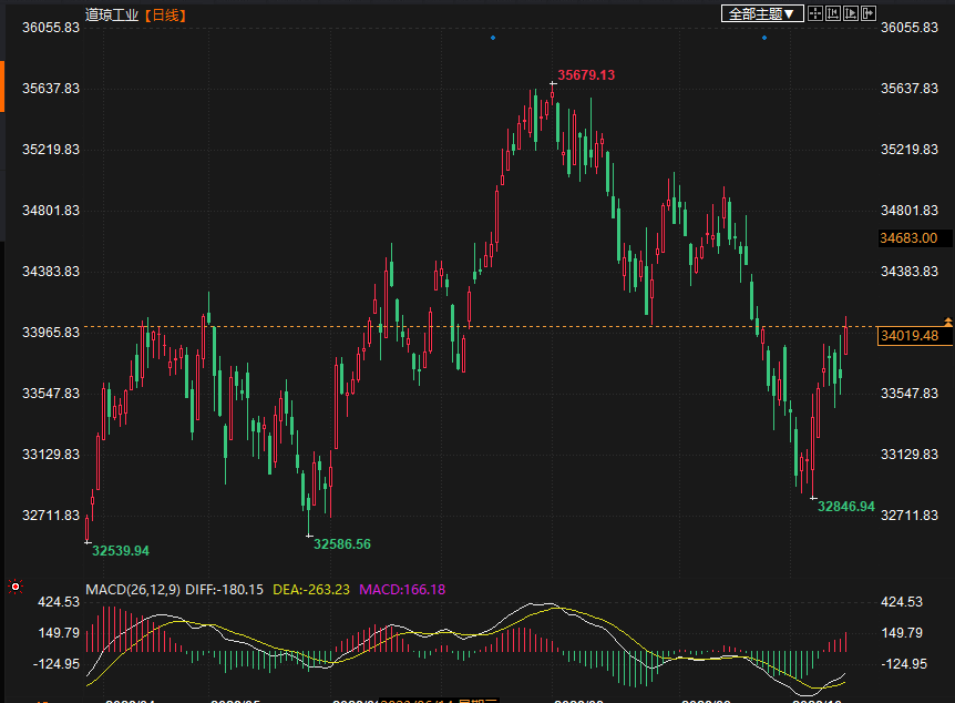 周一盘中,道琼斯指数上涨超过2%。标准普尔500指数所有11个板块盘中交易均走高。