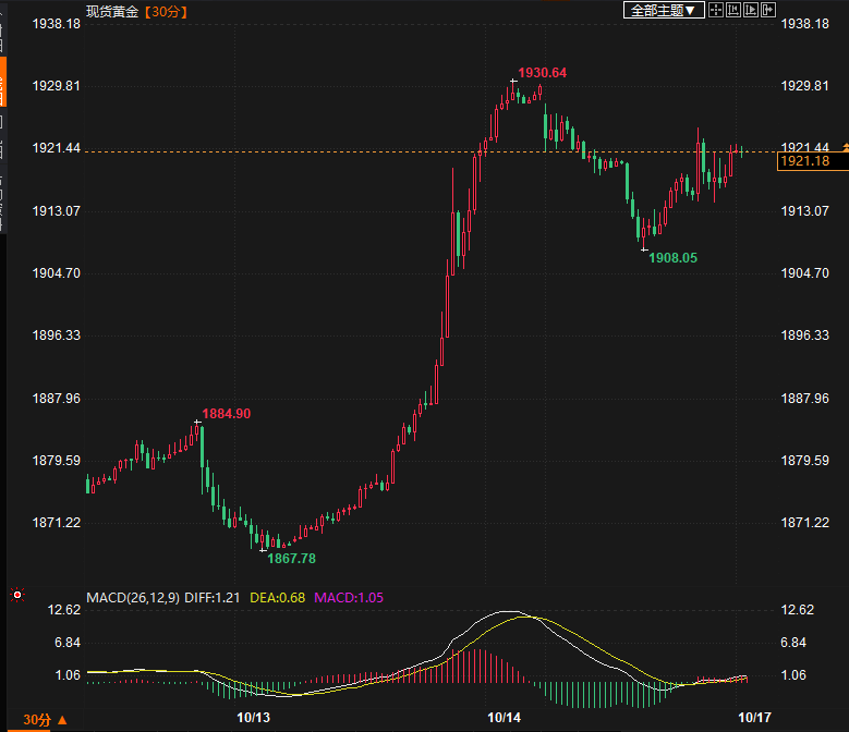 现货黄金30分钟走势图)