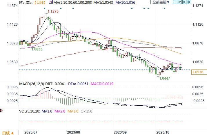 下跌0.38%,报1.0536。消息面上,周三美联储众多官员就有关美元利率问题发表观点,其中美联储理事沃勒周三表示,他希望“等待、观察和观望”美国经济是继续保持强劲势头,还是在联储迄今为止的加息行动后展现疲态。此番发言是一个有力的信号,暗示美联储将不会在下次会议上加息,但很可能在未来加息。纽约联邦储备银行总裁威廉姆斯周三表示,利率需要在一段时间内保持高位,才能使通胀率回到联储设定的2%的目标。而美联储主席鲍威尔和几位地区联储总裁也将于周四发表评论。如果美联储官员们一致在加息还是停止加息事项上保持不松口的倾向,美元料将继续得到支撑而表现强硬。技术图形上,日线图几乎没有显示出走势偏向, 周线图主要趋势则仍然偏向下行,信号指向下跌,10月交投区间1.0448-1.0640两端分别是初步支撑位和阻力位。