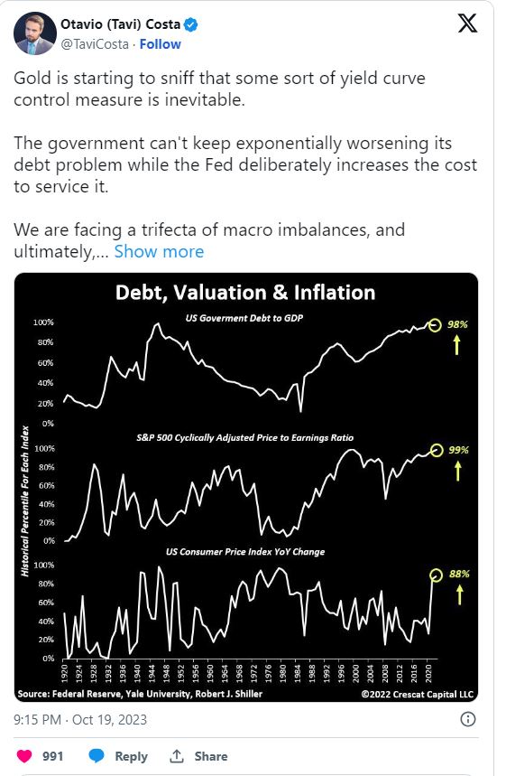 Crescat Capital的投资组合经理塔维·科斯塔在社交媒体上表示,黄金升至2,000美元/盎司可能是黄金投资者开始预期美联储会实施收益曲线控制的迹象。
