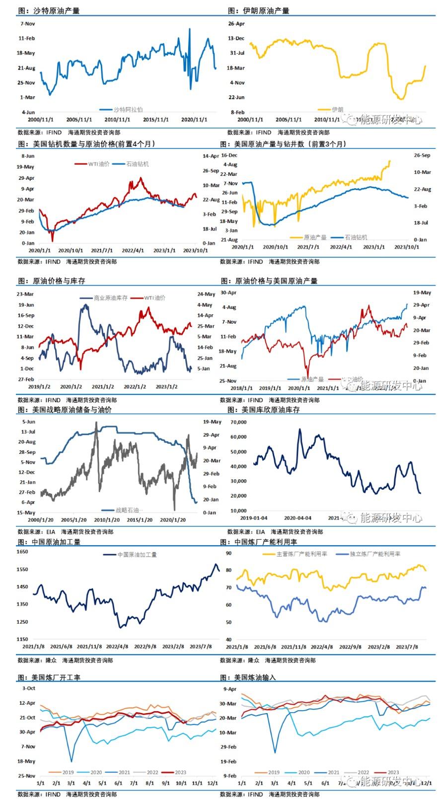 作为巴以冲突直接参与者哈马斯的背后金主,伊朗在巴以冲突中扮演的角色非常关键,目前来看伊朗成为代表阿拉伯世界发声的主要国家,并对该国实施石油禁运,并警告以色列不要入侵加沙,否则可能引发其他方面加入战斗。虽然到目前为止伊朗的举动更多是呼吁层面,但还是招致了美国为代表的西方国家欲重新收紧对伊朗的制裁,制裁力度如果重新影响到石油供应,那将继续冲击油价。伊朗原油今年以来产量恢复迅速,在前期对其制裁有松动阶段,其原油产量持续快速恢复,数据显示2023年伊朗的石油产出增速将仅次于美国,据伊朗方面表示,目前伊朗的石油产量超过330万桶/天,伊朗石油部长此前称由于中东局势,预计油价将达到每桶100美元。为了缓解市场因中东局势对供应的担忧,供应端本周另一个关键变化是美国将暂时取消针对委内瑞拉石油和天然气行业的一些关键制裁,此前委内瑞拉政府与反对派就总统选举达成协议,美国对协议表示欢迎。委内瑞拉总统马杜罗表示委内瑞拉强势回归石油和天然气市场,从目前市场对委内瑞拉原油生产情况预测制裁取消后短期委内瑞拉有望提升20万桶/日的能力。对于伊朗的呼吁以及美国取消对委内瑞拉制裁,欧佩克消息人士称,该组织没有计划立即采取行动或召开紧急会议。此前欧佩克多个成员国强调欧佩克不参与政治,不应将石油作为武器。