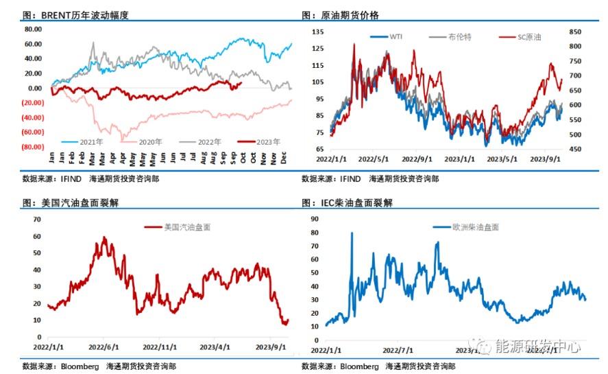 汇通财经APP讯——10月的前三周成为今年以来油价波动最为剧烈的阶段。10月7日巴以冲突爆发之后,油价从低位反弹了10美元,地缘冲突主导的这轮上涨抹去了10月初油价创下的年内最大周度跌幅,让油价重新回到年内高位区域,出现的走势几乎超出了所有投资者或者机构的判断。在在欧佩克+减产推动供应偏紧背景下,发生在中东地区这个全球最核心原油供应区域,巴以冲突成功激发的延续了市场对供应端的担忧,在此之前资金甚至已经结束了对供应端减产题材的炒作,大量投机净多头寸进行了减仓离场。但这场冲突显然改变了油价波动节奏,虽然到目前为止绝大多数投资者认为冲突会局限在巴以二国之间,原油市场供应也没有受到实质性影响,但是对于巴以冲突的进展投资者仍是高度紧张,任何风吹草动都会对油价起到推涨作用,原本对油价后市持谨慎甚至悲观预期的资金也不再看空,至少现阶段巴以局势仍有变数之际选择了观望。从周末最新消息来看,在美国为首的西方国家施压之下,巴以冲突降温概率较大,哈马斯开始释放美国人质,另有消息称美国和以色列官员们正在权衡在没有哈马斯的情况下,加沙地带的未来可能性,并讨论了在联合国支持下建立临时政府的问题。