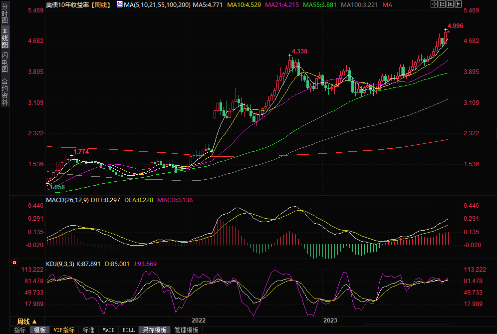 有关伊拉克和叙利亚无人机袭击、也门胡塞武装向以色列发射巡航导弹以及以色列对哈马斯和真主党的袭击的报道,促使投资者采取保守的避险策略,由于这种担忧,10年期国债收益率从接近5%的高点回落,最终在本周结束时稳定在约4.91%左右。