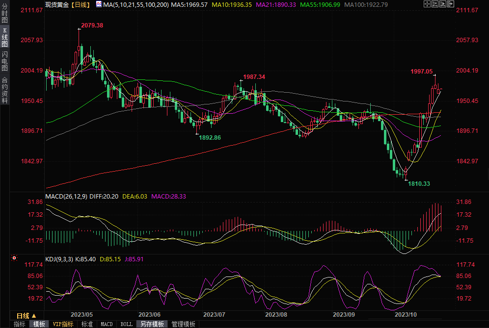 分析师在最新报告中写道:“上周美国通胀高于预期,上周零售销售高于预期,增加了美联储11月进一步收紧货币政策的可能性。” “尽管如此,黄金仍保持了前一周的势头,上涨至 1997 美元/盎司。部分反弹可能归因于空头回补,中东冲突升级刺激了避险需求,进一步推动了空头回补。”