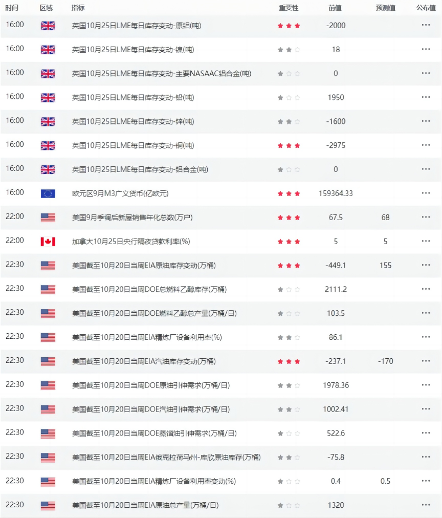 日内经济数据和事件