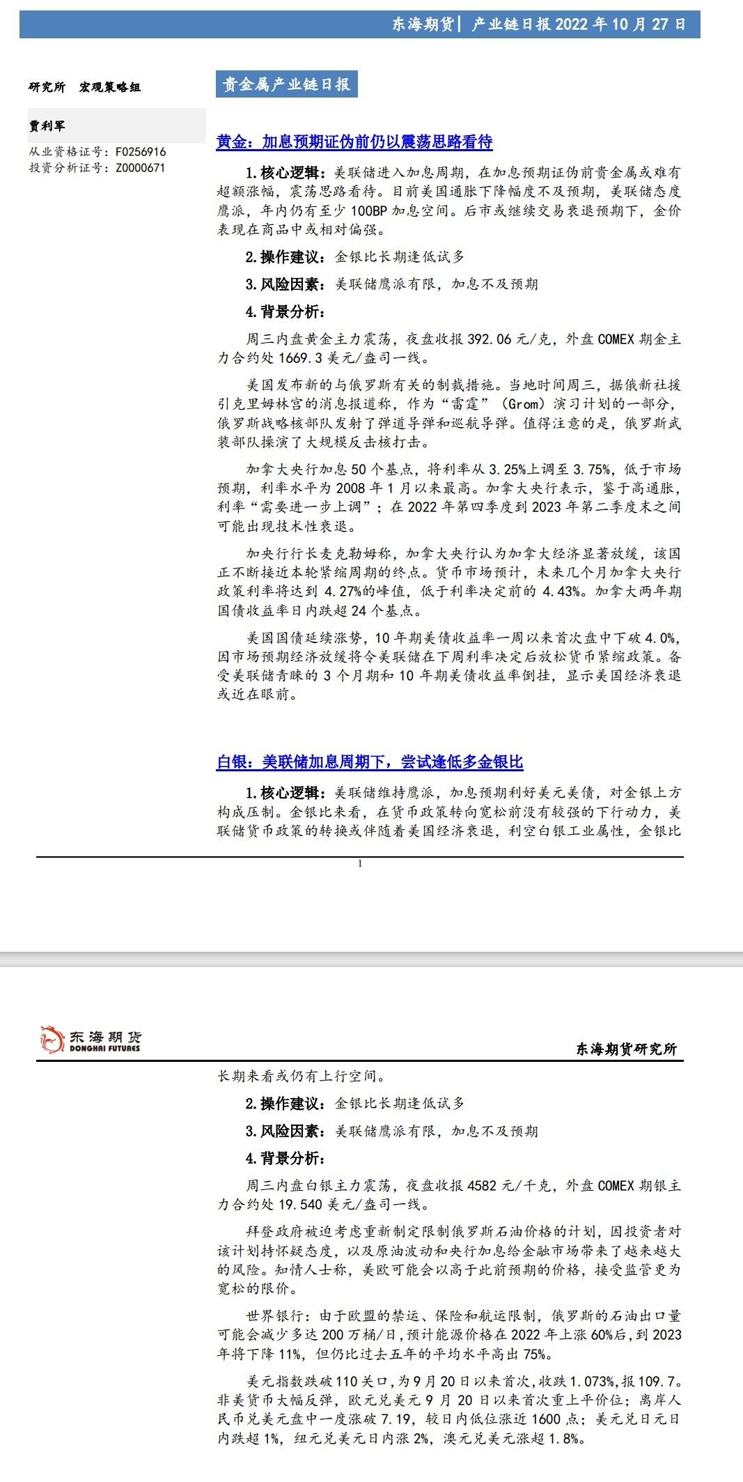 标题:【东海期货10月27日产业链日报】贵金属篇:美元走弱,外盘金银上涨