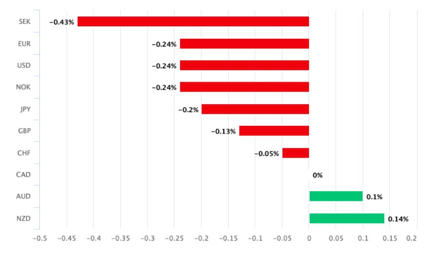 市场对降息可能性给予更大权重的举动给加元带来压力,加元兑美元汇率已跌至7个月低点,美元/加元一度触及1.3809,为3月27日以来新高;事实上,除兑澳元和纽元略有上涨外,加元兑所有 G10 货币均下跌。