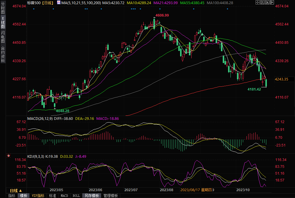 标准普尔500指数下跌1.43%,收于4,186.77点,收盘低于图表分析师广泛关注的4,200点水平。这是标准普尔500指数自5月份以来首次收于该门槛之下。纳斯达克综合指数下跌2.43%,收于12,821.22点,这是自2月21日以来最糟糕的一天,当时该指数下跌了2.5%。