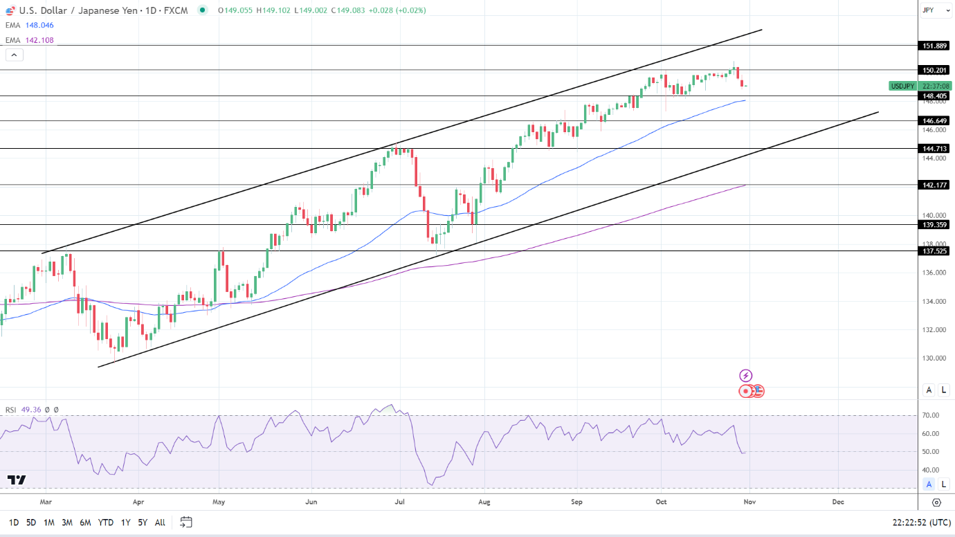 FXEmpire分析师Bob Mason表示,日线图上看,美元/日元维持在50日和200日均线上方,发出看涨价格信号。美元/日元跌破148.405支撑位,将导致空头在50日均线附近运行。