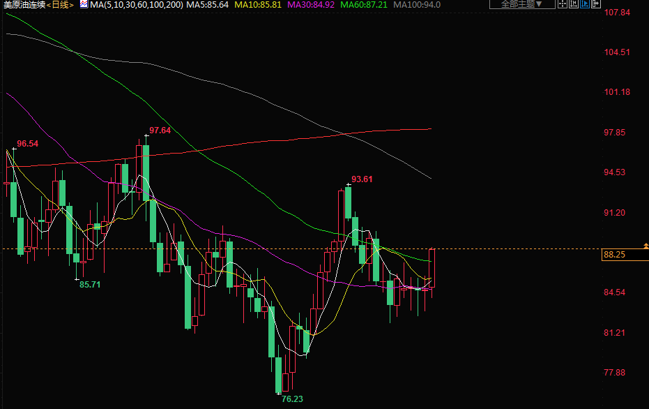 商品收盘情况:布伦特原油期货结算价上涨2.3%,报每桶95.69美元。美国原油期货上涨3%,至87.91美元。美国期金结算价上涨0.7%,报每盎司1669.20美元。