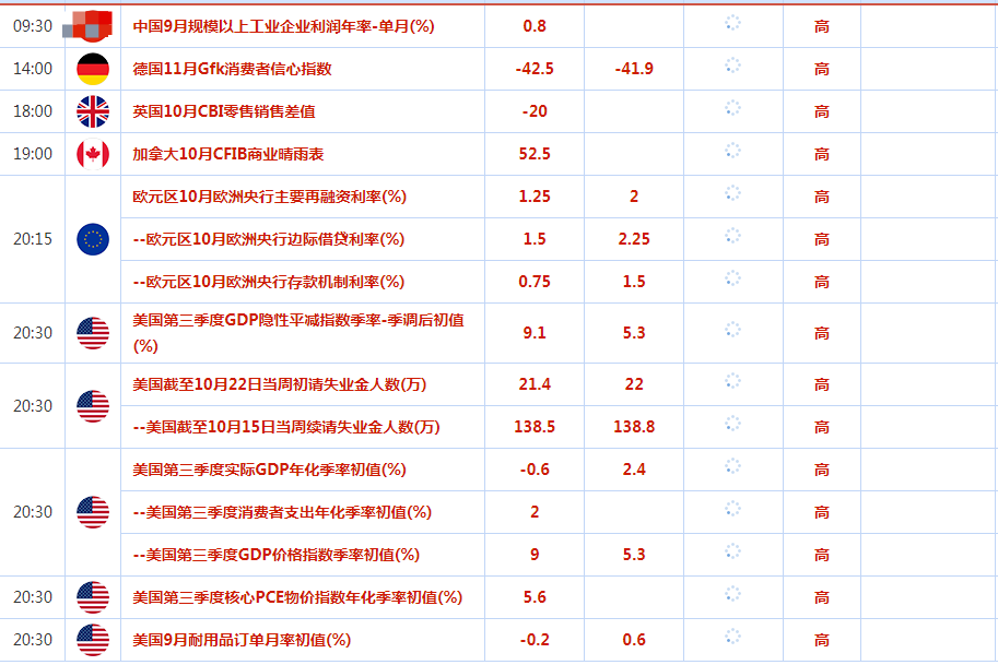 人们仍然普遍预计美联储将在11月加息75个基点。黄金对美国利率上升高度敏感,因为它们增加了持有非孳息黄金的机会成本。现在焦点转向周四的美国国内生产总值(GDP)数据,随后是周五的美国核心通胀数据,这些数据可能为美联储的加息轨迹提供更多清晰度。