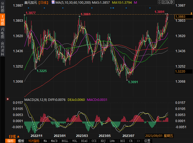美元/加元汇率现报1.38760。涨幅0.38%。