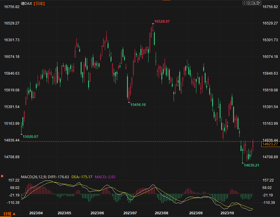 德国DAX30指数收盘上涨111.70点,涨幅0.75%,报14922.04点;