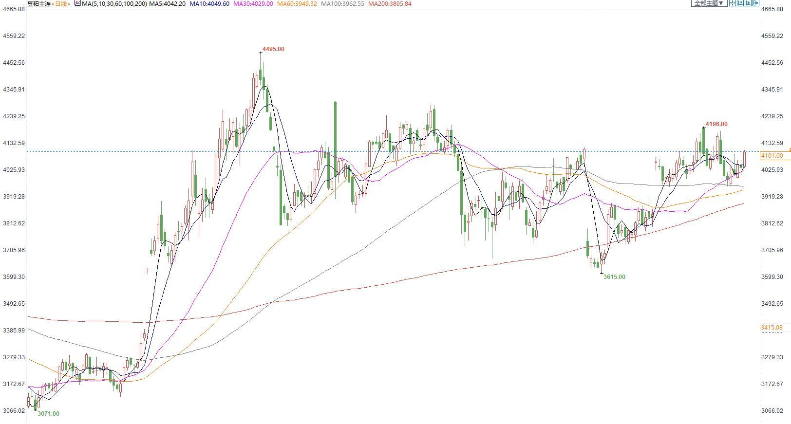 豆粕2301合约日内涨1.64%,收盘价4102元/吨,现货张家港43%蛋白豆粕5410元/吨。