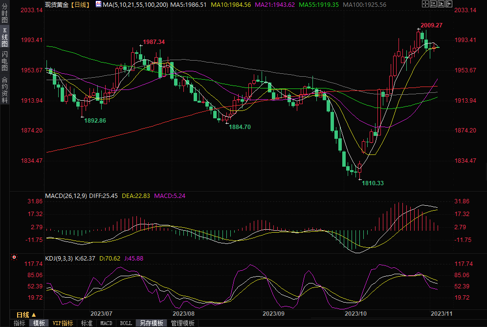 现货黄金收张0.15%,收报1985。77美元/盎司。