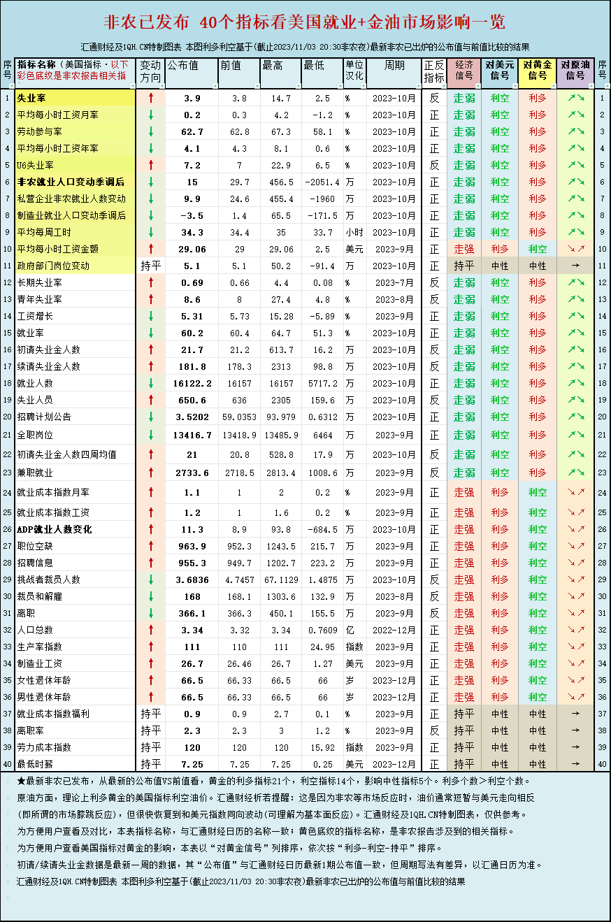 标题:一张图:非农报告打压美联储紧缩预期,40个指标看美国就业+金油市场影响一览