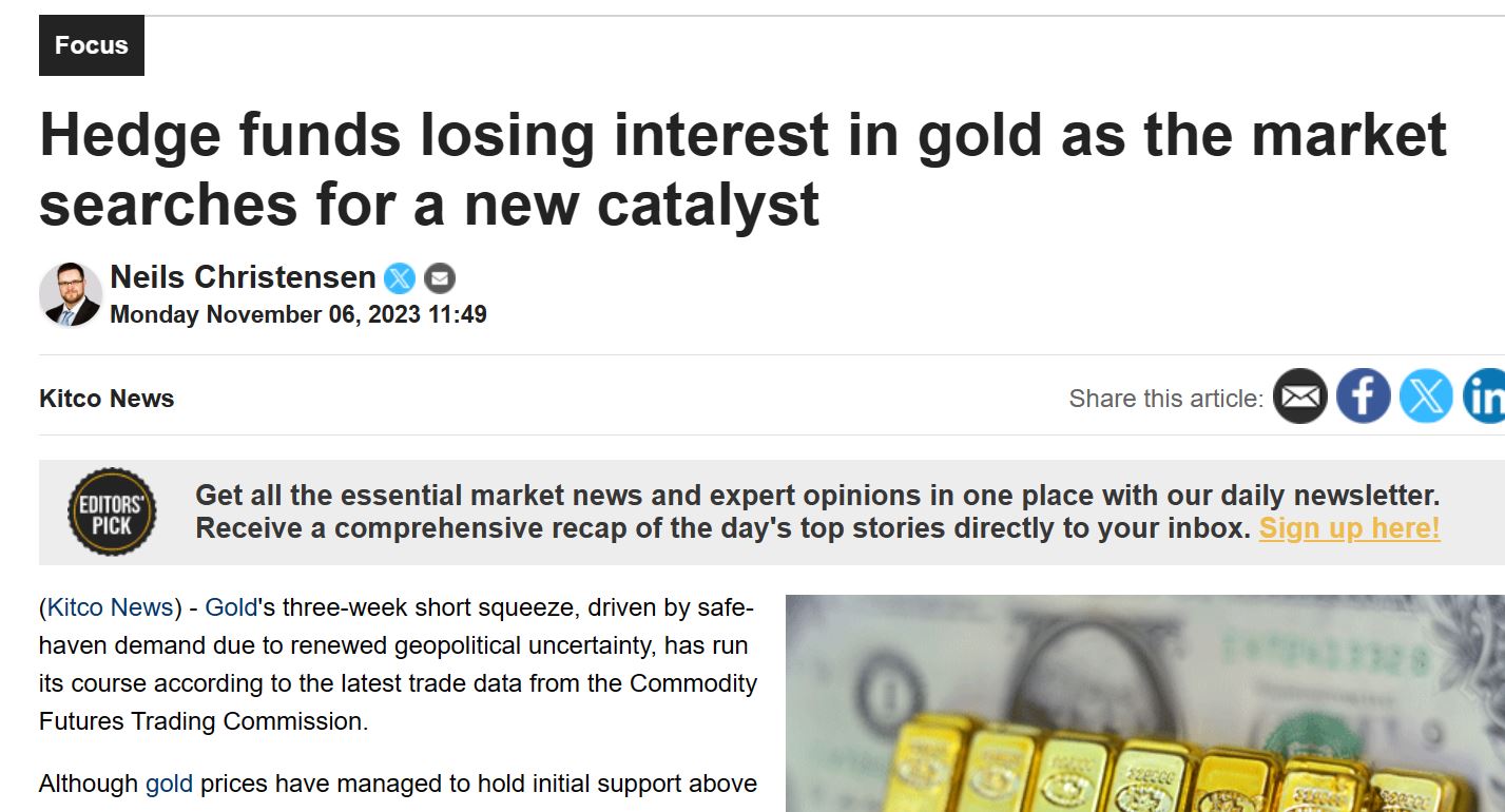 标题:持仓数据显示黄金空头挤压已经结束,但对冲基金正在远离白银