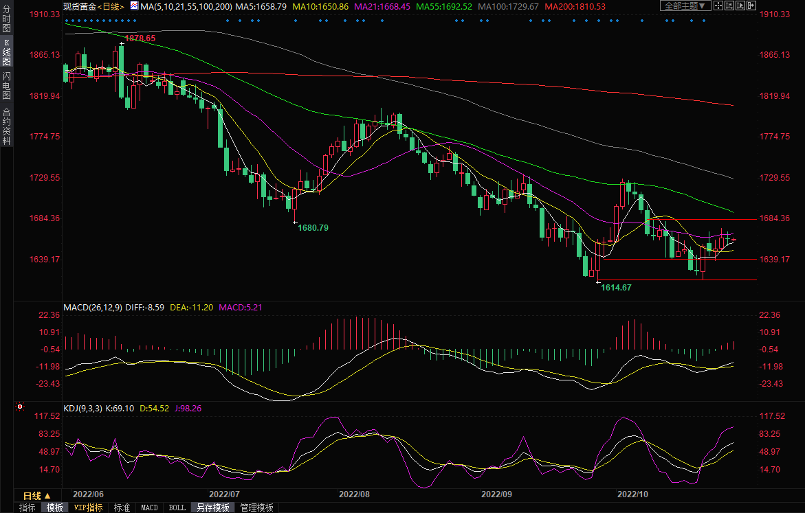 整体来看,虽然美元大幅反弹令黄金多头有所顾忌,而且晚间的PCE数据料将显示美国通胀仍处于数十年高位,美联储下周大概率仍会加息75个基点,可能会限制金价的上涨空间;但很显然,市场仍普遍预计美联储将在12月份放缓加息步伐,美联储货币政策将迎来拐点,美债收益率仍持续走弱,这将在中长线给金价提供进一步上涨机会,关注55日均线1692.50和1700关口阻力,下方留意10日均线1650.75附近支撑。