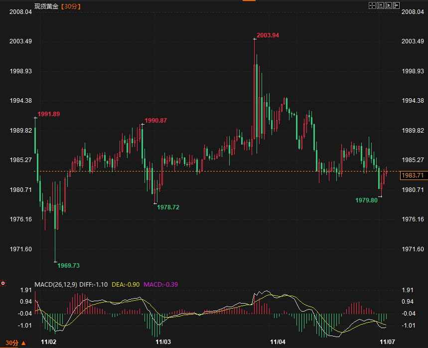 现货黄金30分钟走势图)