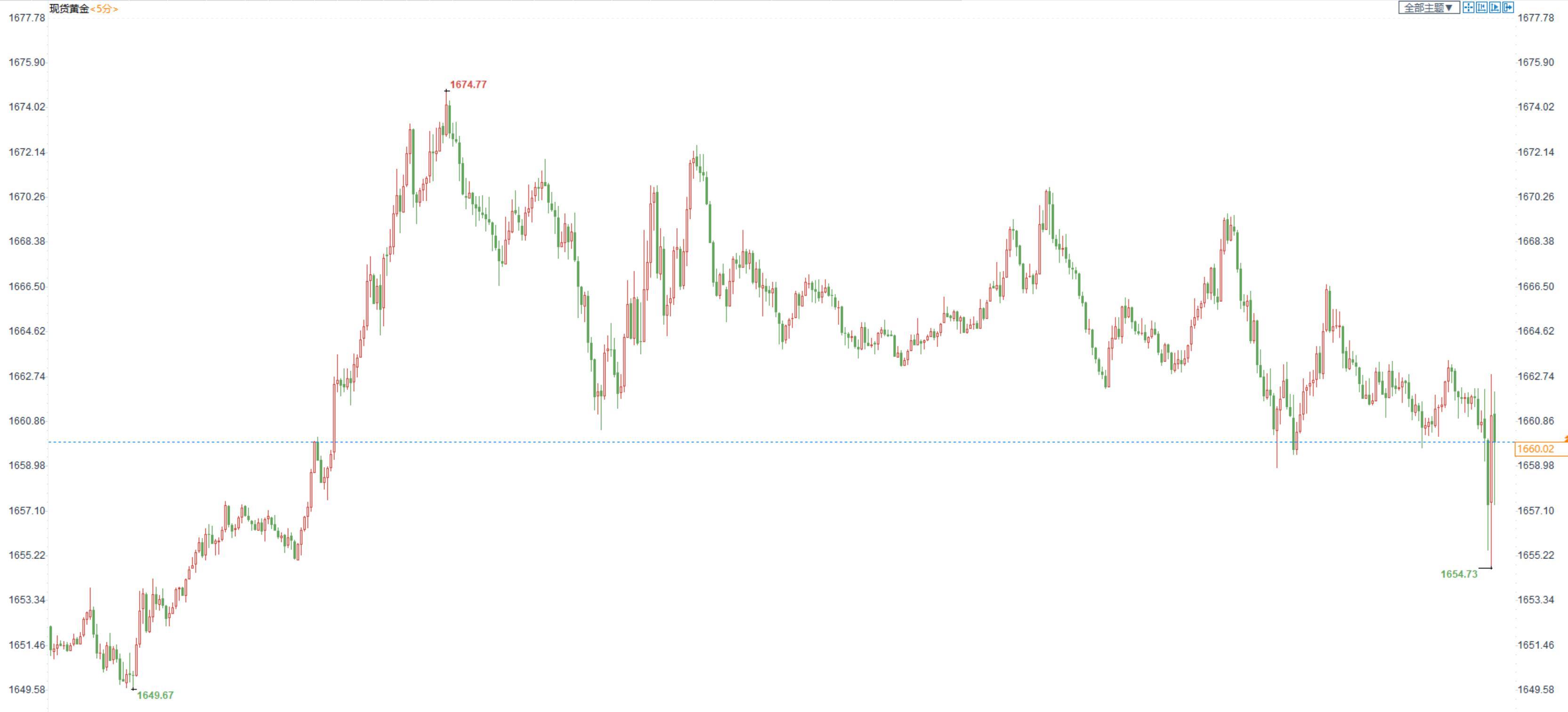图:现货金价5分钟图
