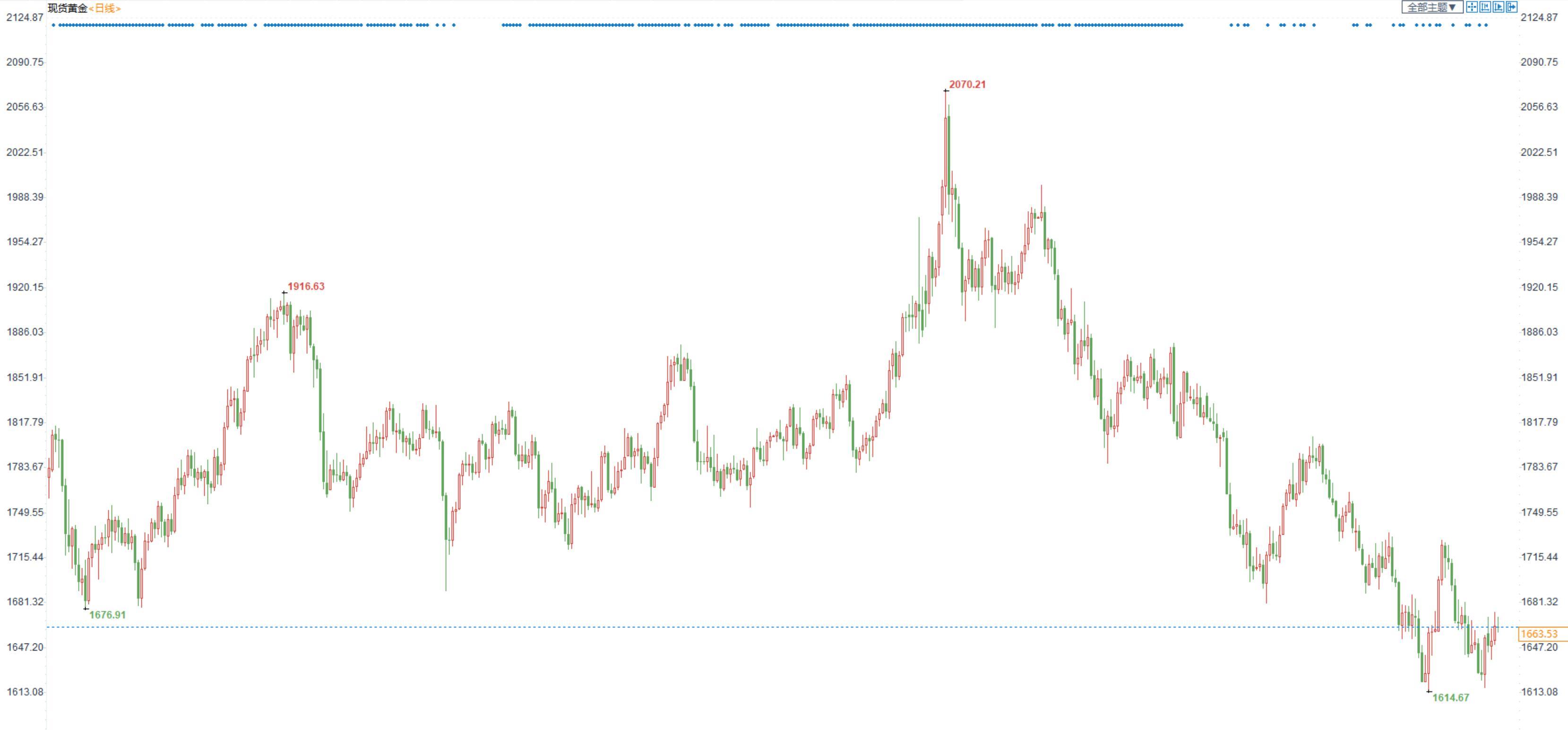【今日行情】金银均收跌。AU2212收盘价为392.70,收跌0.33%;AG2212收盘价为4564,收跌0.50%。欧美经济数据表现欠佳使得市场对于美联储放缓加息步伐预期升温,加上英国新首相上台,