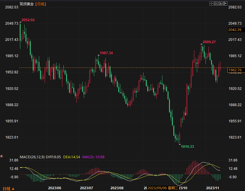 数据显示美国10月份消费者价格保持不变后,金价在前一交易日上涨超过1%。10月份PPI数据是通胀压力消退的最新迹象。