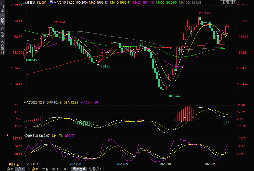 现货黄金周四结算价收涨1.12%,收报1981.11美元/盎司。