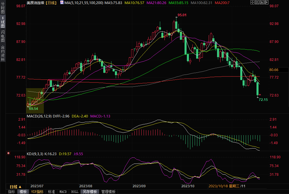 WTI 12月原油期货周四结算价收跌3.76美元/桶,跌幅4.9%,收报72.9美元/桶,为四个月最低水平。