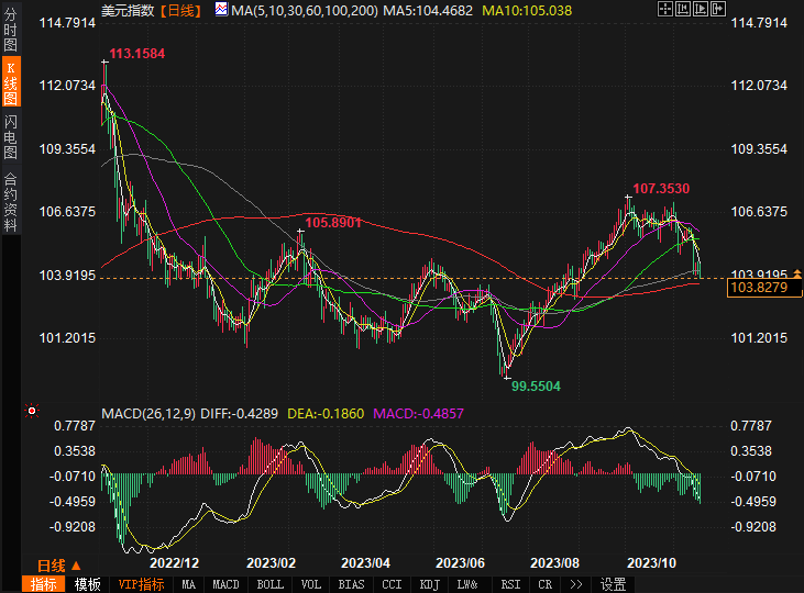 美元指数继续下滑趋势,并跌至104.00区间以下,现报103.92,跌幅0.46%,本周跌幅约1.60%。
