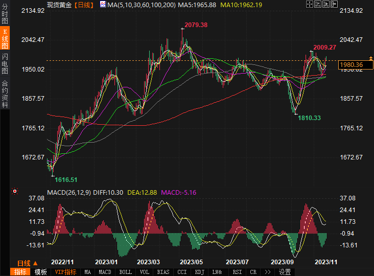 现货黄金收跌0.03%,收报1980.65美元/盎司。