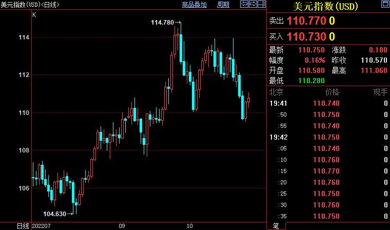 美元指数下跌0.84%至105.688,盘中创9月20日以来新低至109.527。