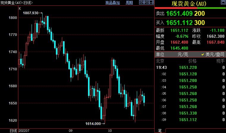 现货黄金下跌0.20%至1652.53美元/盎司;