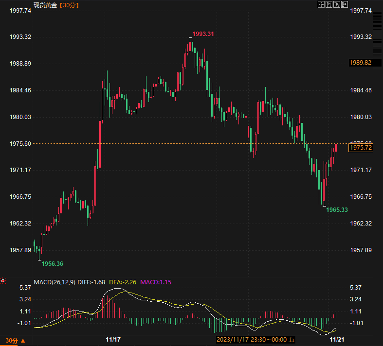 现货黄金30分钟走势图 图源:)