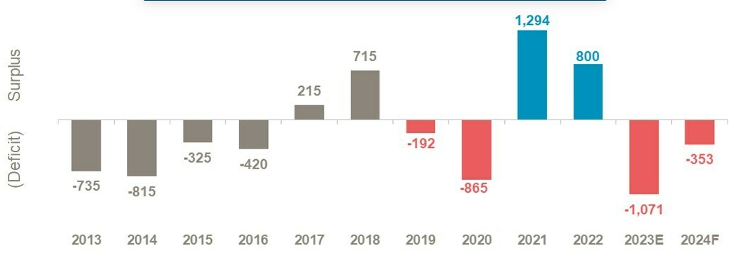 Edward Sterck不仅预计2023年铂金将出现创纪录的赤字,而且对2024年的初步估计表明,由于疲软的供应增长无法跟上健康的需求,供需前景将持续失衡。