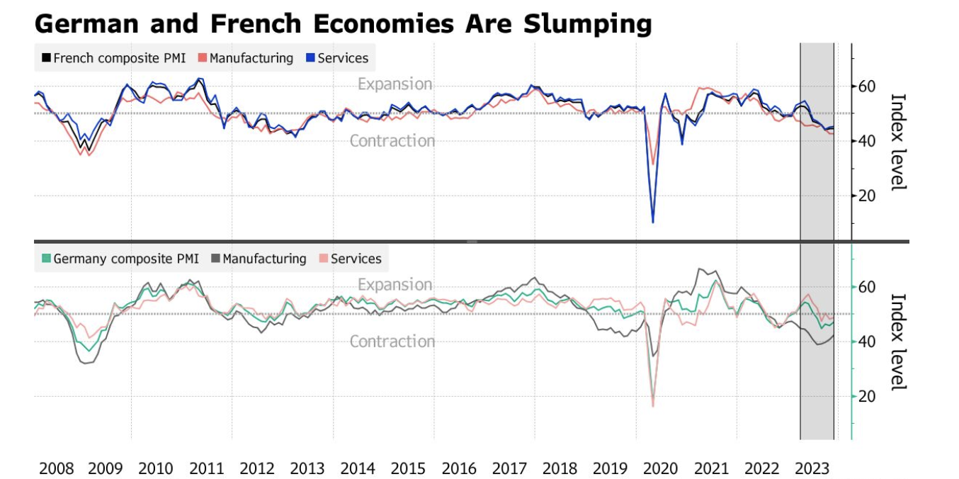 欧元区第二大经济体的制造业和服务业同样受到需求疲软的影响。随着未利用的商业产能增加,数据显示私营部门就业人数三年来首次下降。