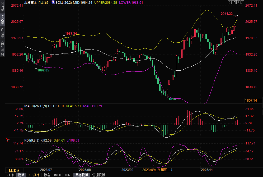 现货黄金交易价最高达2044.33美元/盎司。自当天开始以来,美元一直面临抛售压力,在市场对美联储不会进一步加息的押注日益增多的情况下,美元在隔夜交易中跌至三个月低点,因押注美联储不再加息,黄金和其他金属价格受益,金价维持在六个月高位。