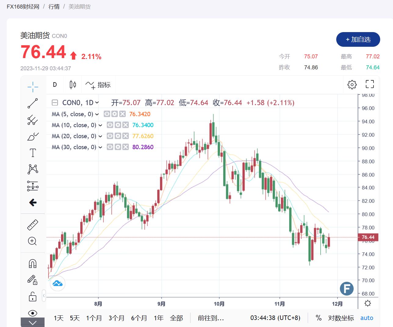 周二(11月28日)油价上涨,因美元走软以及主要石油生产国可能在本周晚些时候的OPEC+会议上延长持续减产的乐观情绪提振了市场情绪,原油价格涨超2%。