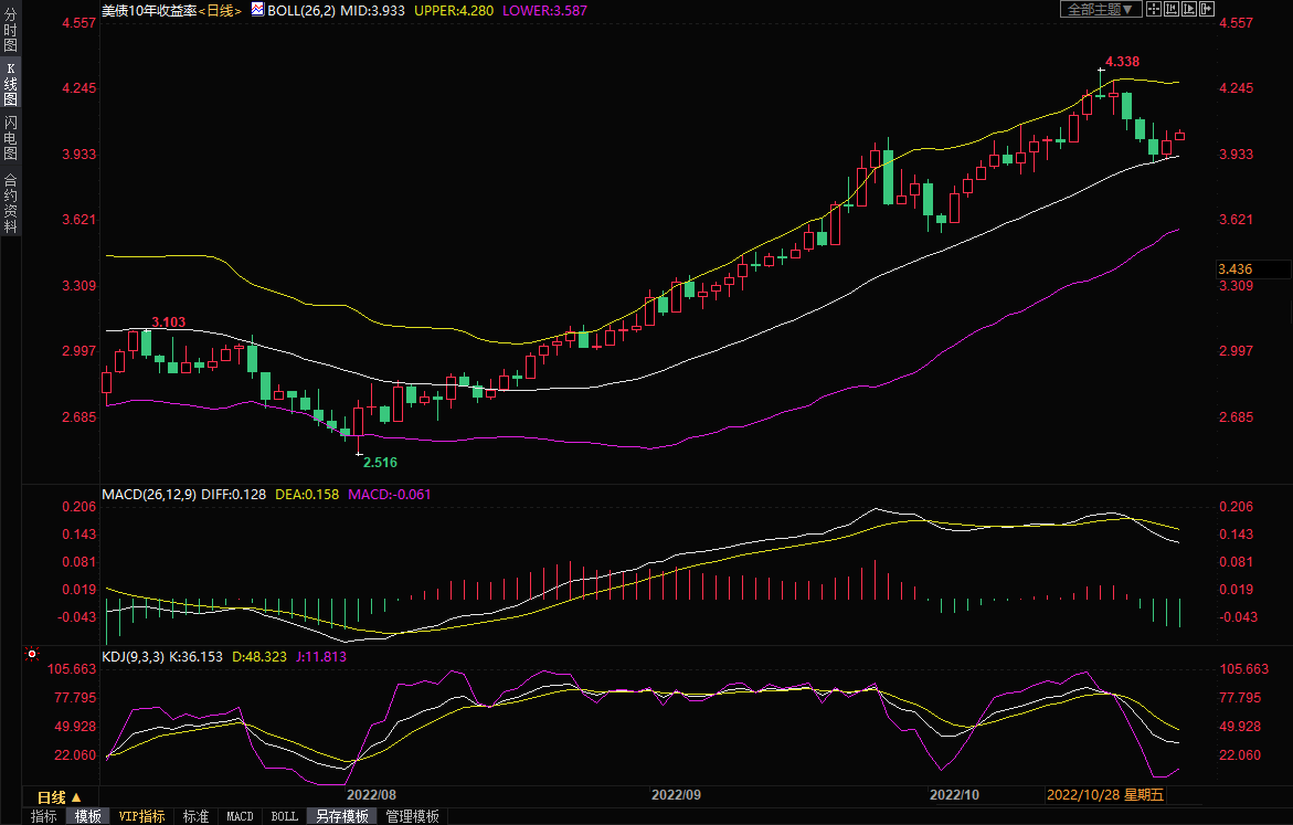 【美债收益率上升,美联储宽放缓加息的预期减弱】美国国债收益率上周五上涨1.8%,此前数据显示核心通胀压力仍在上升,向债券市场发出美联储/将继续激进加息的信号。