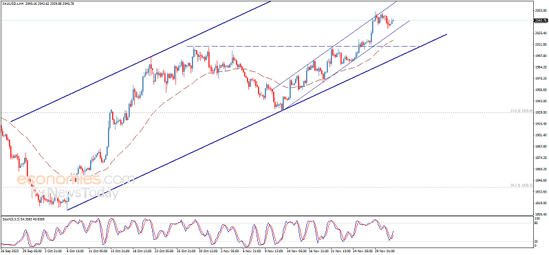 金价继续在看涨通道内交易,这支持金价在未来几个交易日进一步上升的预期。需要指出的是,若金价跌破2029.00美元/盎司,这可能推动金价转为看跌,并首先测试2009.30美元/盎司,然后重新尝试反弹。