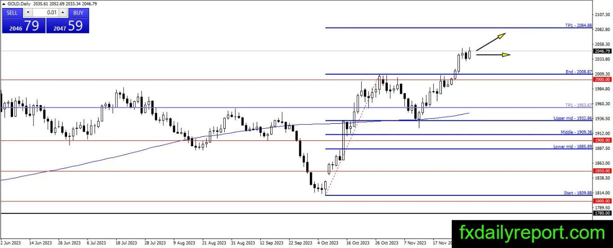 金价走势长期看涨,目前上行目标为2084美元。如果价格下跌,那么2,000美元可能会成为交易者考虑多头头寸的支撑点。除非交易者准备好进行高风险投机交易,否则不建议空头头寸。