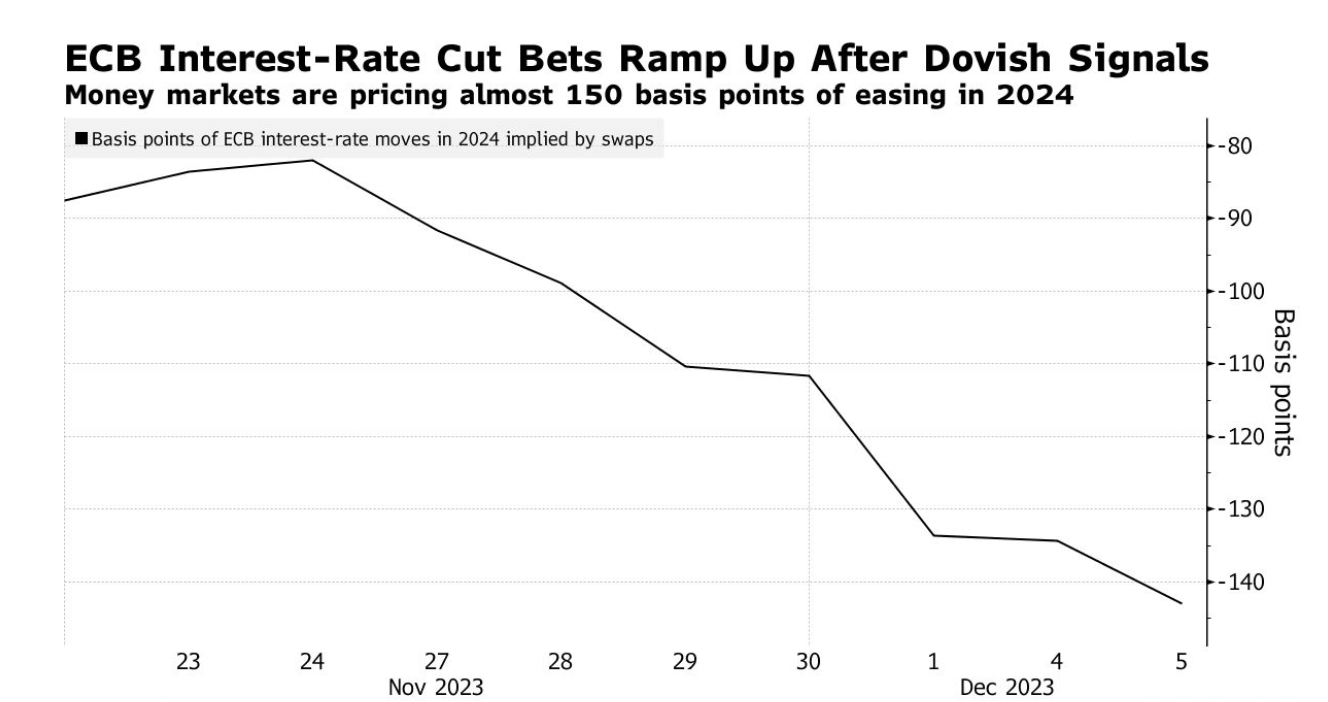 货币市场加大了对更快、更大幅度降息的押注,几乎完全预计到 3 月份降息 25 个基点,到明年年底降息 150 个基点。