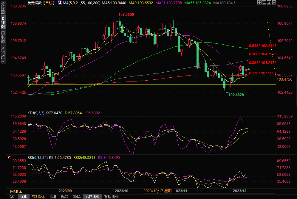 汇市:上周美元5个交易日中只有周四收跌,整体呈现震荡走高行情,自周初的103.20附近小幅走高,最高触及104.29水平,不过央行降息的预期抑制美指的上行空间,最终美元结束此前连续三周下跌的势头,上周以小涨0.77%做收。