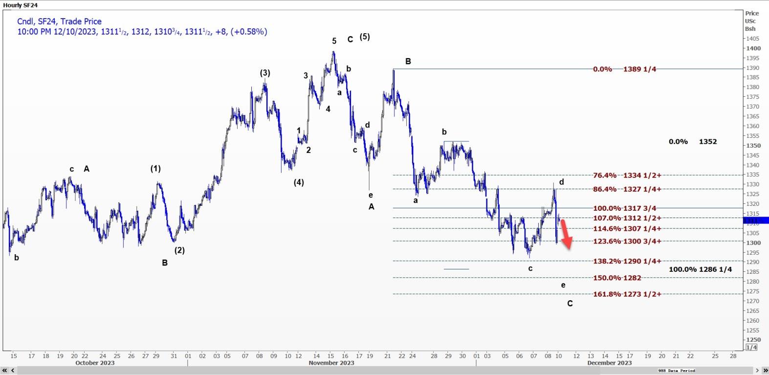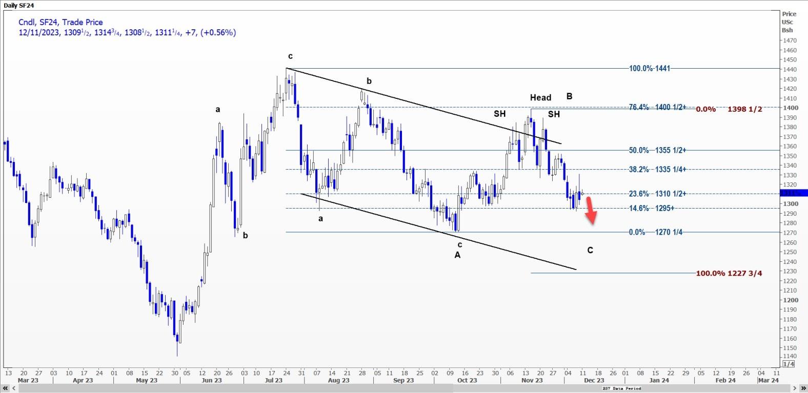 标题:CBOT大豆可能重新测试13.0075美元的支撑位
