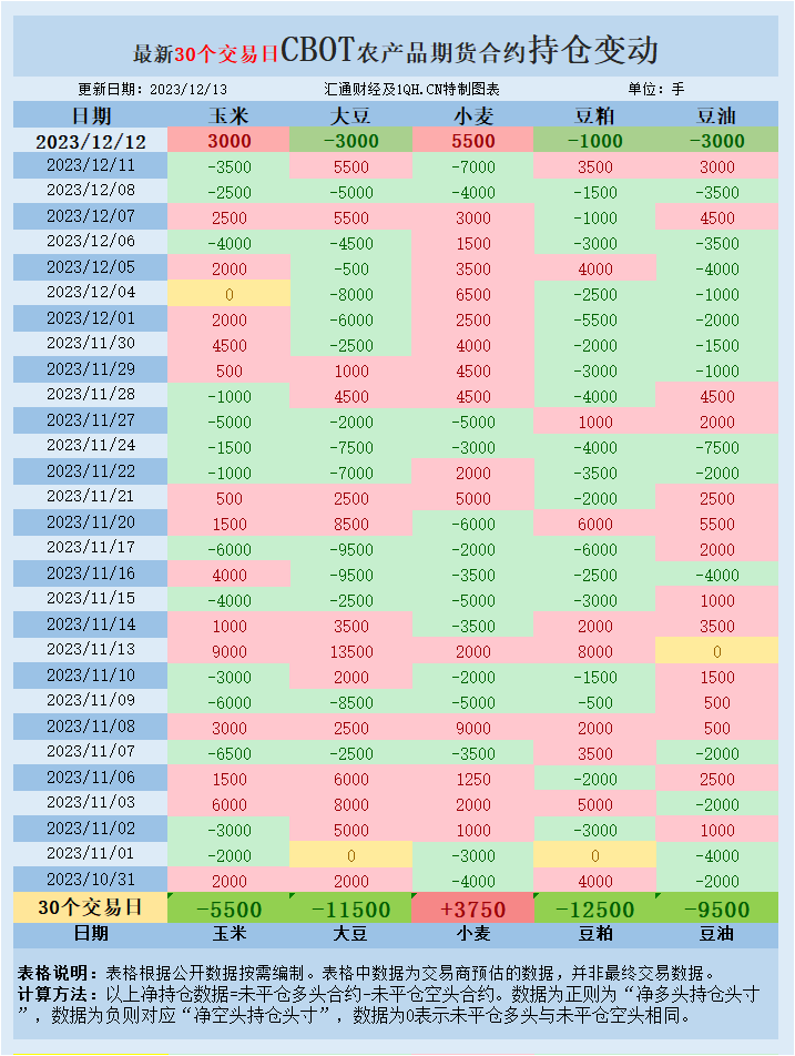 CBOT持仓变动情况