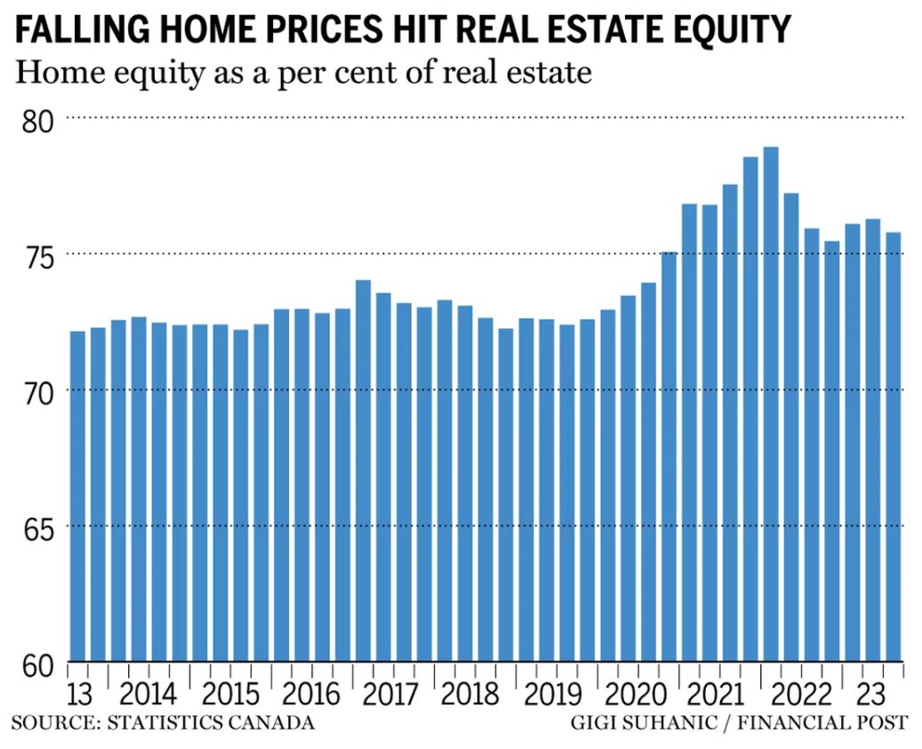 因为房价下跌,统计局表示,加拿大人的房地产净值在第三季度下降了1.7%。