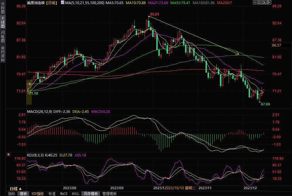 WTI 1月原油期货收涨2.11美元/桶,涨幅将近3.04%,收报71.58美元/桶。