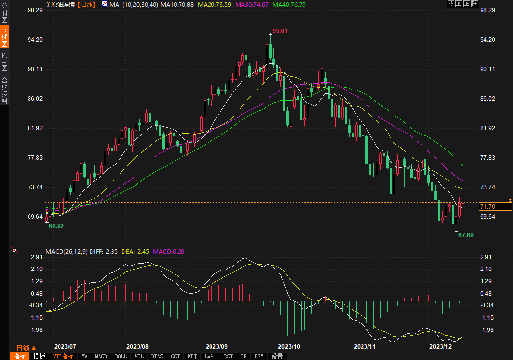 WTI1月原油期货收跌0.15美元/桶,跌幅0.21%,收报71.43美元/桶,本周累计上涨0.28%。