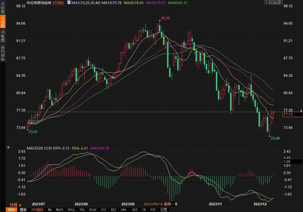美联储主席杰罗姆·鲍威尔表示,旨在抑制通胀的加息可能会结束,但仍存在进一步加息的可能性。受美联储会议结果和主席杰罗姆·鲍威尔鸽派言论的推动,油价连续第三天上涨。美联储已向市场确认将于2024 年降息,这是市场希望看到的迹象。未来较低的利率可能意味着情绪和经济活动的推动,从而引发原油需求的增加。