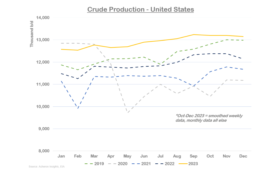 2024年美国石油产量增长可能将很难赶上2023年。2023年美国石油产量历史最高水平很大程度上归功于私人生产商。在2023年,私人生产商希望通过提高产量增加其作为收购目标的吸引力。