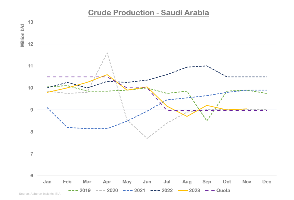 此外,沙特和欧佩克+仍致力于通过明年第一季度延长减产期限以及更好地执行减产来抵消非石油输出国组织产量的增长。